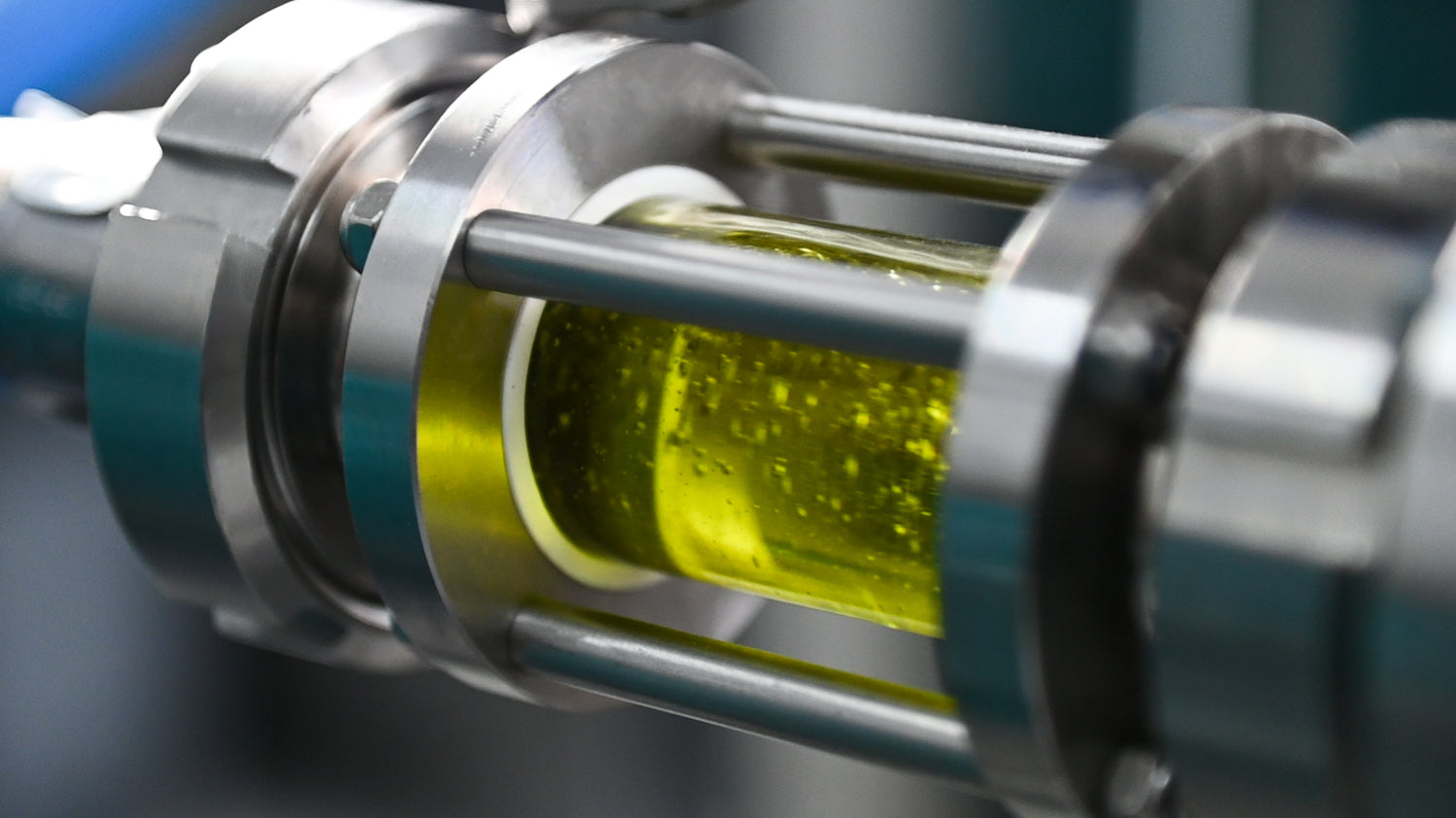 The paste is transferred to the decanter, where the olive oil is extracted. When the olive oil flows from the decanter, it's a special moment: the oil shimmers, fine aerosols fill the air, and the wonderful aroma permeates the entire mill.
