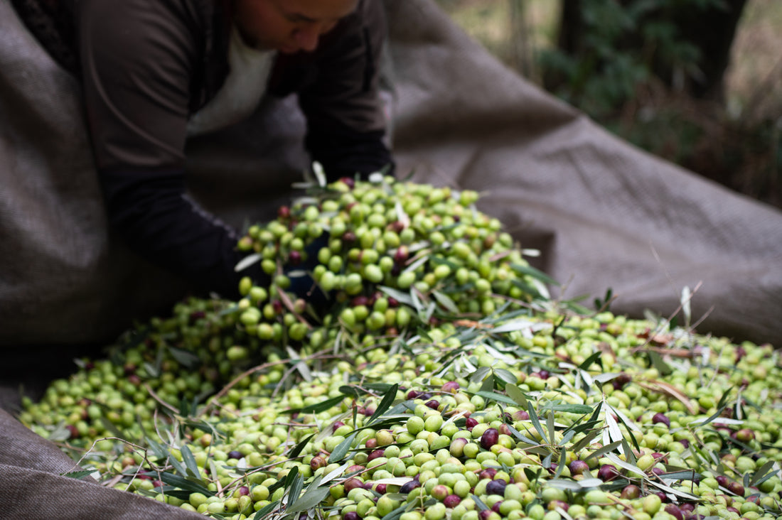Processing begins on the day of harvest: leaves and twigs are removed, the olives are washed and dried. Crushed in a knife mill, the resulting pulp is stirred under vacuum in closed kneading machines, ensuring the fine oil droplets combine.