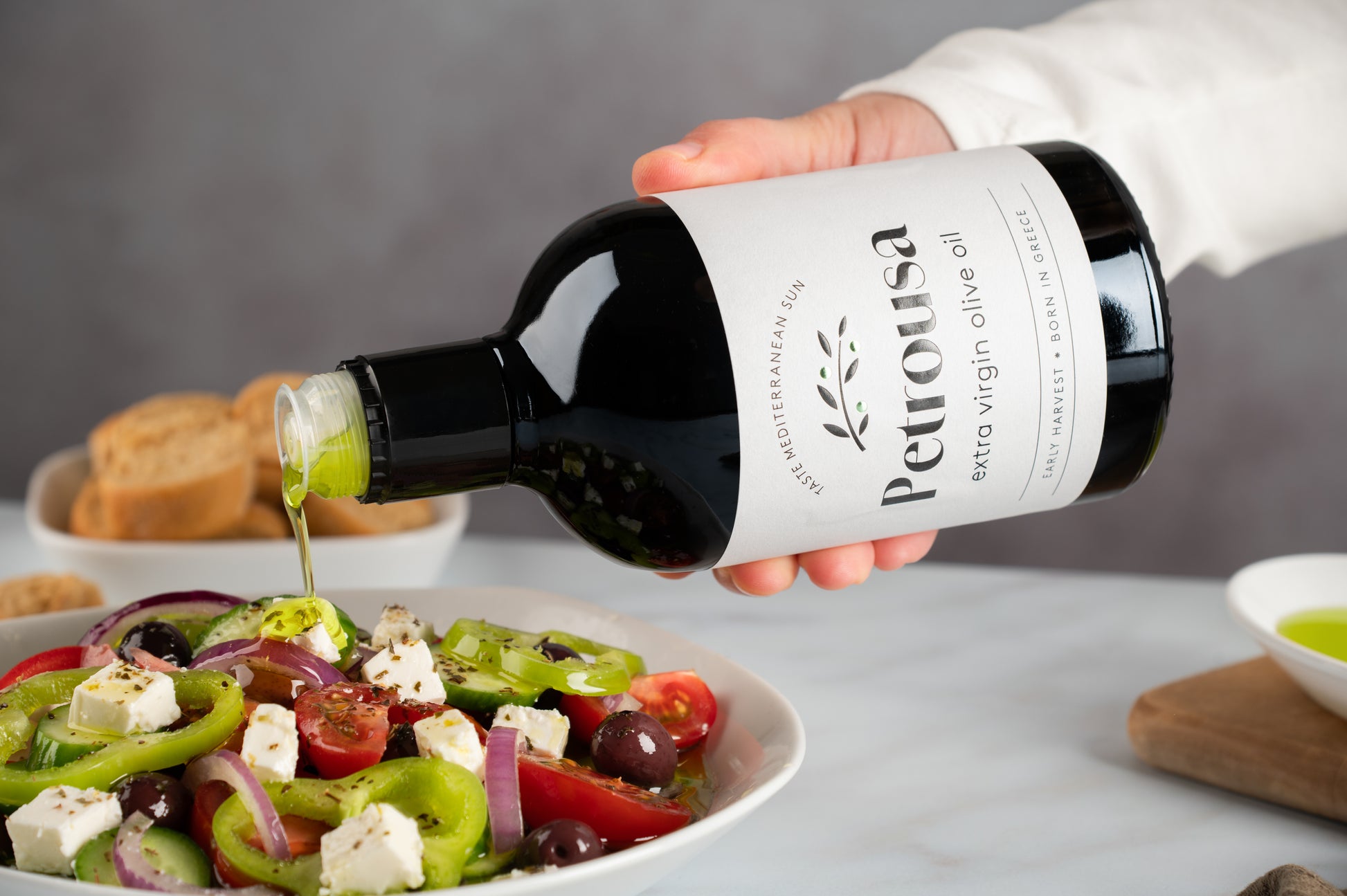 The harvest took place in October 2025 with exclusively hand-picked olives from olive groves in the Petrousas region of northeastern Greece.